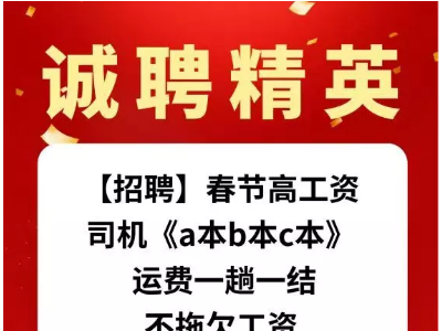 【招聘】春节高工资,司机《a本b本c本》 运费一趟一结,不拖欠工资,工资:12000-25000