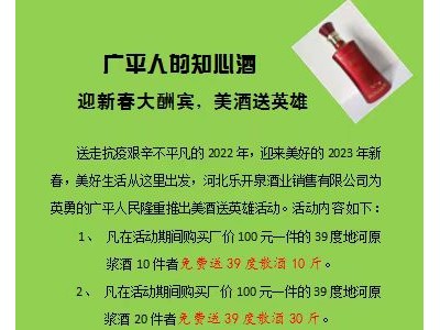 北乐开泉酒业销售有限公司推出美酒送英雄活动:活动内容如图