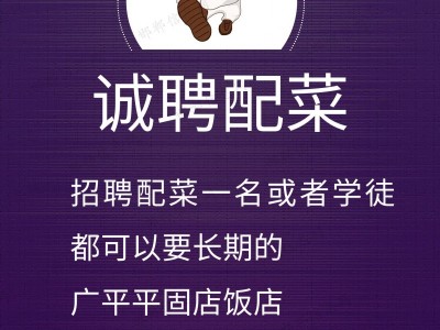 广平平固店饭店招聘配菜一名或者学徒都可以要长期的。