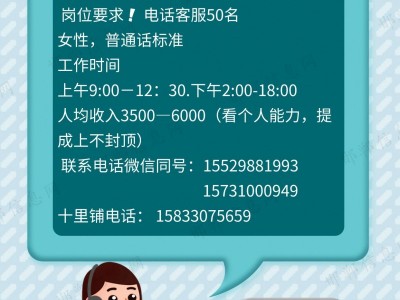 岗位要求❗ 电话客服50名,女性,普通话标准