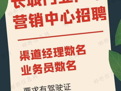 长城门业广平营销中心招聘,渠道经理数名,业务员数名,要求有驾驶证,待遇面谈,电话0310-2668996//13643104296