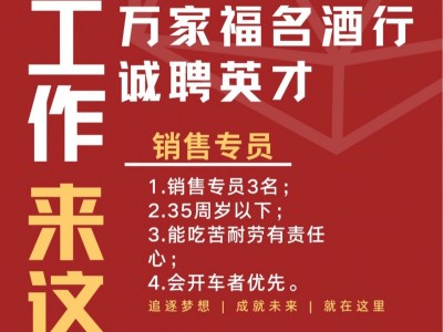 广平县万家福名酒行诚聘销售人才!