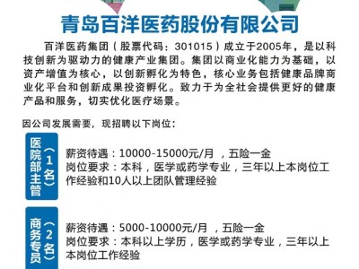 岗位要求:本科以上学历,医学或药学专业,三年以上本岗位工作经验