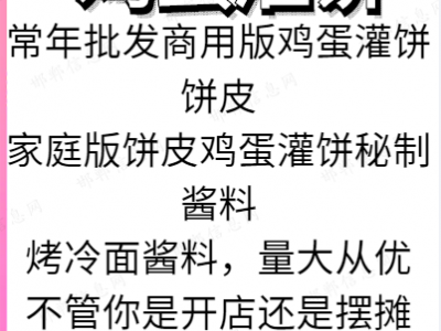 智饼壹家鸡蛋灌饼常年批发商用版鸡蛋灌饼饼皮,家庭版饼皮,鸡蛋灌饼秘制酱料。烤冷面酱料,量大从优。不管你是开店还是摆摊省时又省事,饼皮质量好。电话15030005658