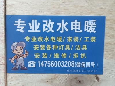 专业改水电、铺地暖,各种家装、工装。安装灯具、洁具。电话