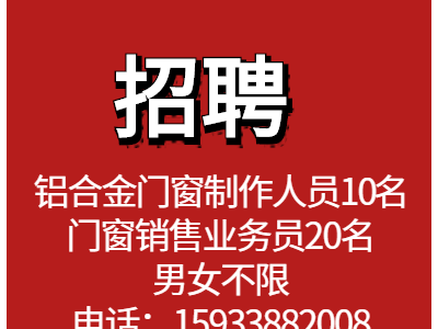 1.门窗销售业务员20名,男女不限!有经验者优先!