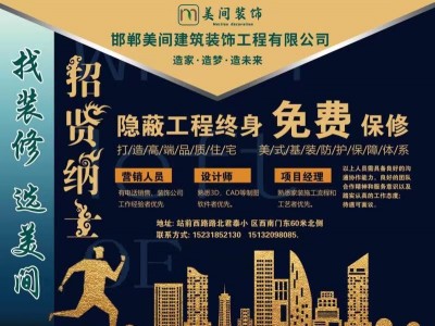 美间装饰 装修公司招聘销售 经验不限,年龄不限。 吃苦耐劳 底薪+提成+奖金+绩效 有意联系
