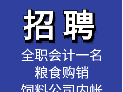 招聘全职会计一名,粮食购销、饲料公司内帐