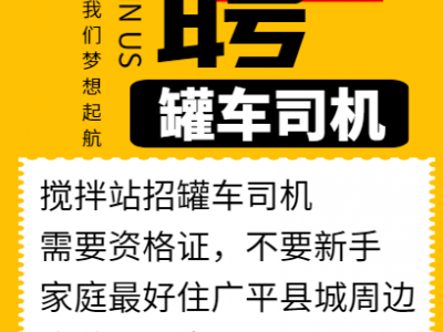 招聘:搅拌站招罐车司机(需要资格证,不要新手。家庭最好住广平县城周边,跑魏县,广平)