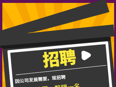 因公司发展需要,现招聘短视频拍摄、剪辑一名,招聘条件及要求如下:
