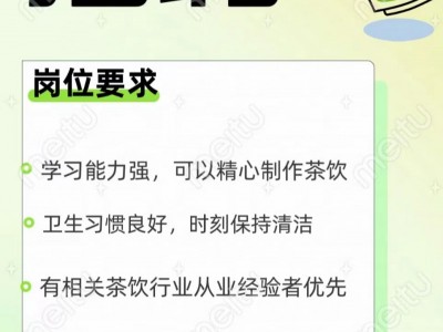 奶茶店招店员