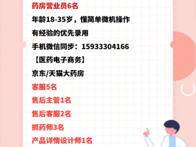 客服5名,售后主管1名,售后客服2名,抓药师3名,产品详情设计师1名,电微17692014617