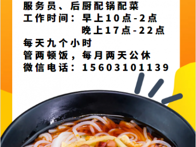 广平螺蛳粉火锅招聘:服务员、后厨配锅配菜