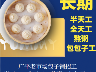 广平老市场包子铺招工:长期:半天工,全天工,熬粥,包包子工。