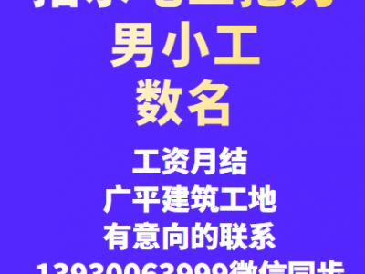 广平建筑工地招水电二把刀数名,男小工数名,工资月结,有意向的联系,微信同步,混子勿扰!