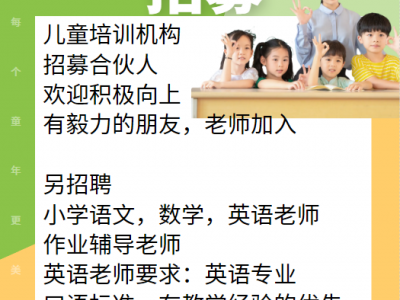儿童培训机构招募合伙人,欢迎积极向上,有毅力的朋友,老师加入