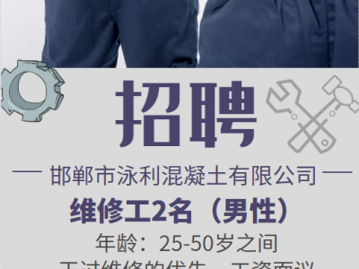 维修工2名(男性),年龄:25-50岁之间,干过维修的优先,工资面议