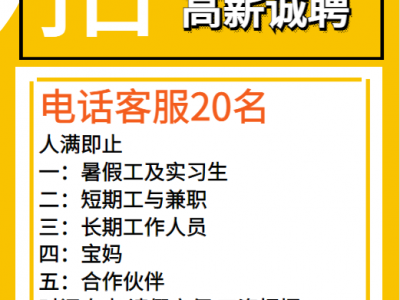 高薪诚聘电话客服20名 人满即止