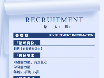 招聘信息:诚招销售,有经验者优先,要求:沟通能力强,有责任心,学习能力强,年龄25岁到35岁,工作地点:广平县北环,工资面议