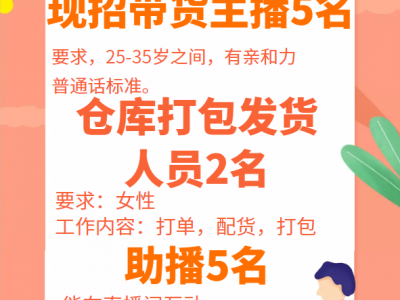 招聘助播5名,能在直播间互动,懂电脑简单操作者。