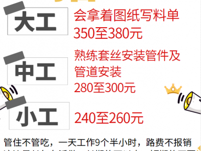 做消防工程!大工350至380元,中工280至300元,小工240至260元(要求如图所示)管住不管吃,路费不报销,长年有活,不要短期,不超过55岁,刘,项目在上海嘉定