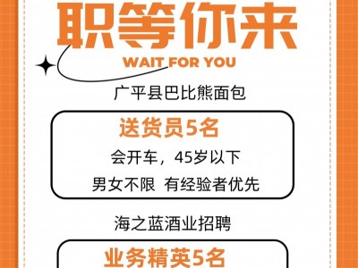 广平县巴比熊面包招聘送货员5名,会开车,45岁以下,男女不限。有经验者优先