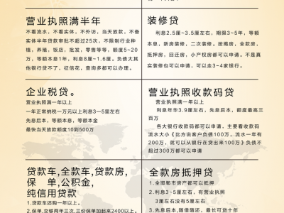身份证,贷款车、全款车,贷款房、全款房,保单,营业执照、社保公积金、公司缴税开发票的,缴税的, 烟酒门市 有烟草证的。