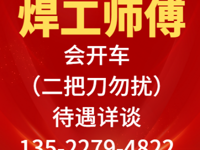 应业务量需要3名焊工师傅,要求会开车(二把刀勿扰), 待遇详谈,欢迎推荐转发,期待您的加入!