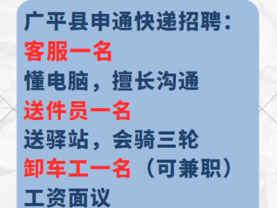 广平县申通快递招聘: