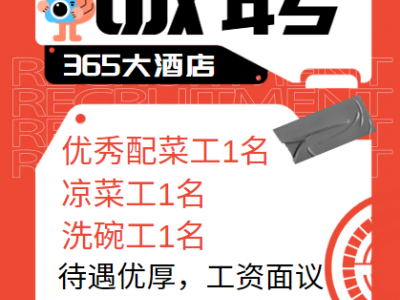 广平县365大酒店诚聘优秀配菜工1名,凉菜工1名,洗碗工1名,待遇优厚工资面议,
