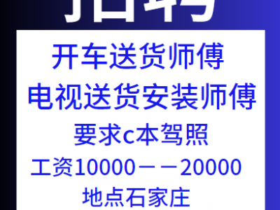 招聘开车送货师傅 和电视送货安装师傅,要求c本驾照,工资10000--20000 地点石家庄