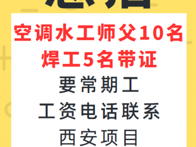 西安项目急用:空调水工师父10名,焊工5名带证,要常期工,工资电话联系