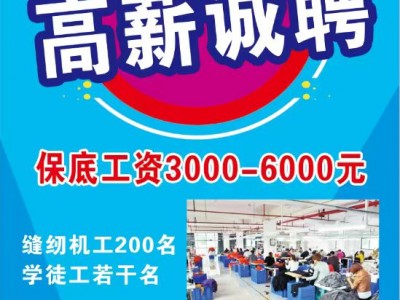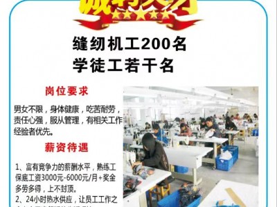 广平县冠宇服装有限公司高薪诚聘:大量招收熟练缝纫机工