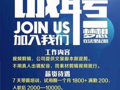 本公司现招聘抖音视频剪辑人员,不用真人出镜,