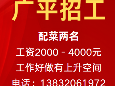 广平找配菜两名,工资2000-4000元,工作好做有上升空间