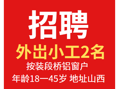 招外岀小工2名按装段桥铝窗户,年龄18一45岁,地址山西