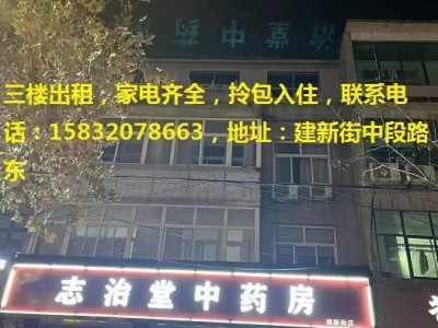 出租房屋:建新街中段(联华超市南),戴尔电脑对过,志治堂中药房楼上三楼,水电方便,拎包入住!