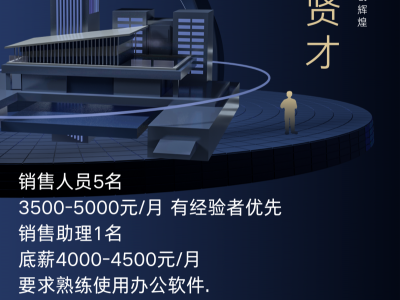 销售助理1名底薪4000-4500元/月