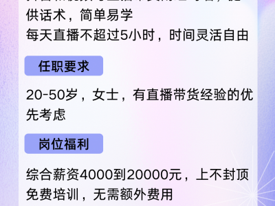 20-50岁,女士,有直播带货经验的优先考虑