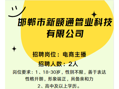 岗位要求:1、18-30岁,性别不限,善于表达,性格开朗,形象端正,具备亲和力。2、高中及以上学历。待遇:面议