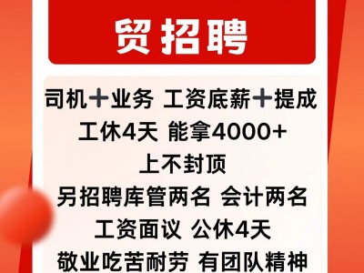广平玮清商贸有限公司招聘司机➕业务,工资底薪➕提成,工休4天,能拿4000以上不封顶,另招聘库管两名,会计两名,工资面议,公休4天,敬业吃苦耐劳,有团队精神。电话13722598522,15081701177