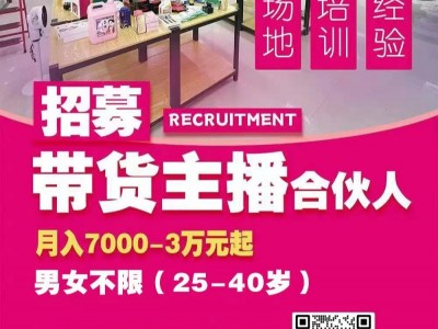 直播带货主播(合伙人)10名,时间自由 风口行业 月收入7000-3万起