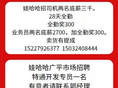 娃哈哈广平市场招聘特通开发专员一名。