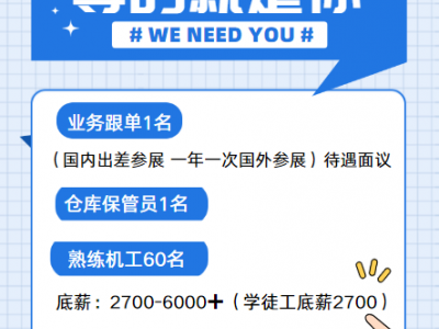 熟练机工60名,底薪:2700-6000➕(学徒工底薪2700)