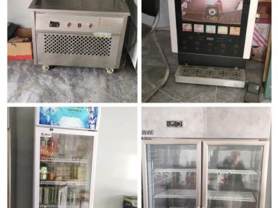 出售 炒酸奶机,双门不锈钢冷藏柜,单门冷藏柜,咖啡饮料一体机,吧台,水果架,