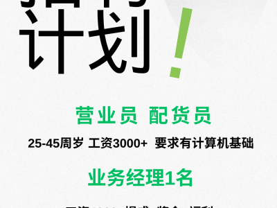 诚聘营业员,配货员 25-45周岁 工资3000+ 要求有计算机基础