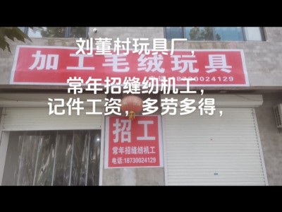 招聘职位:普工/技工,缝纫机工 毛绒玩具加工,常年招 缝纫机工,计件工资,时间自由,紧靠实验四,实验一小学,冬暖夏凉地址刘董村村委会西行100米,加工毛绒玩具,