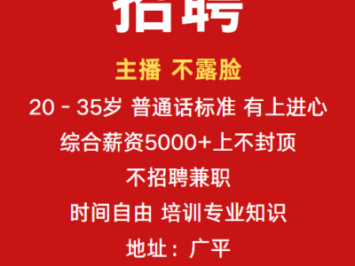 招聘:主播,不露脸,20-35岁,普通话标准,有上进心,综合薪资5000+上不封顶 ,不招聘兼职