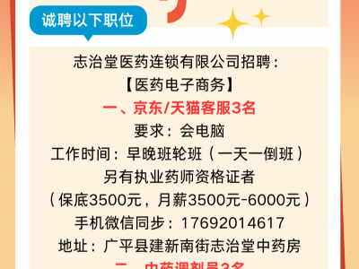 志治堂医药连锁有限公司招聘: