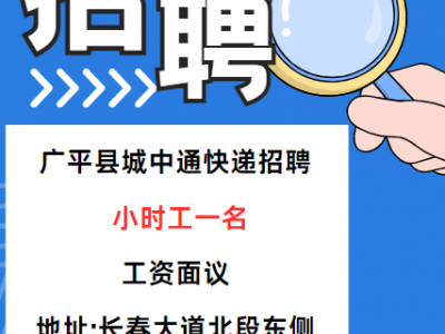 广平县城中通快递招聘小时工一名、地址:长春大道北段东侧 工资面议